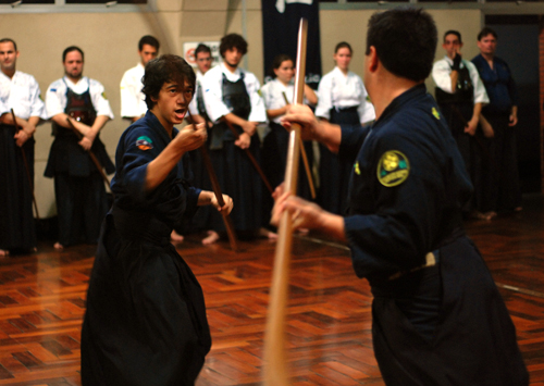 . El entrenamiento es rígido, se habla poco y se hace mucho, Osato Sensei habla lo justó, ni más, ni menos, pasó detalles y formas de los katas en los cuales pude entender mejor la practica de Jo, es muy didáctica la forma que tiene Osato Sensei para enseñar con solo mostrar una vez uno puede entender mucho, es paciente, ya que mas de una vez me tuvo que repetir las cosas por que no salian muy bien, pero siempre dedico mucho tiempo al entrenamiento que tuvimos con el. Flavio Fontana (Unidade Buenos Aires)