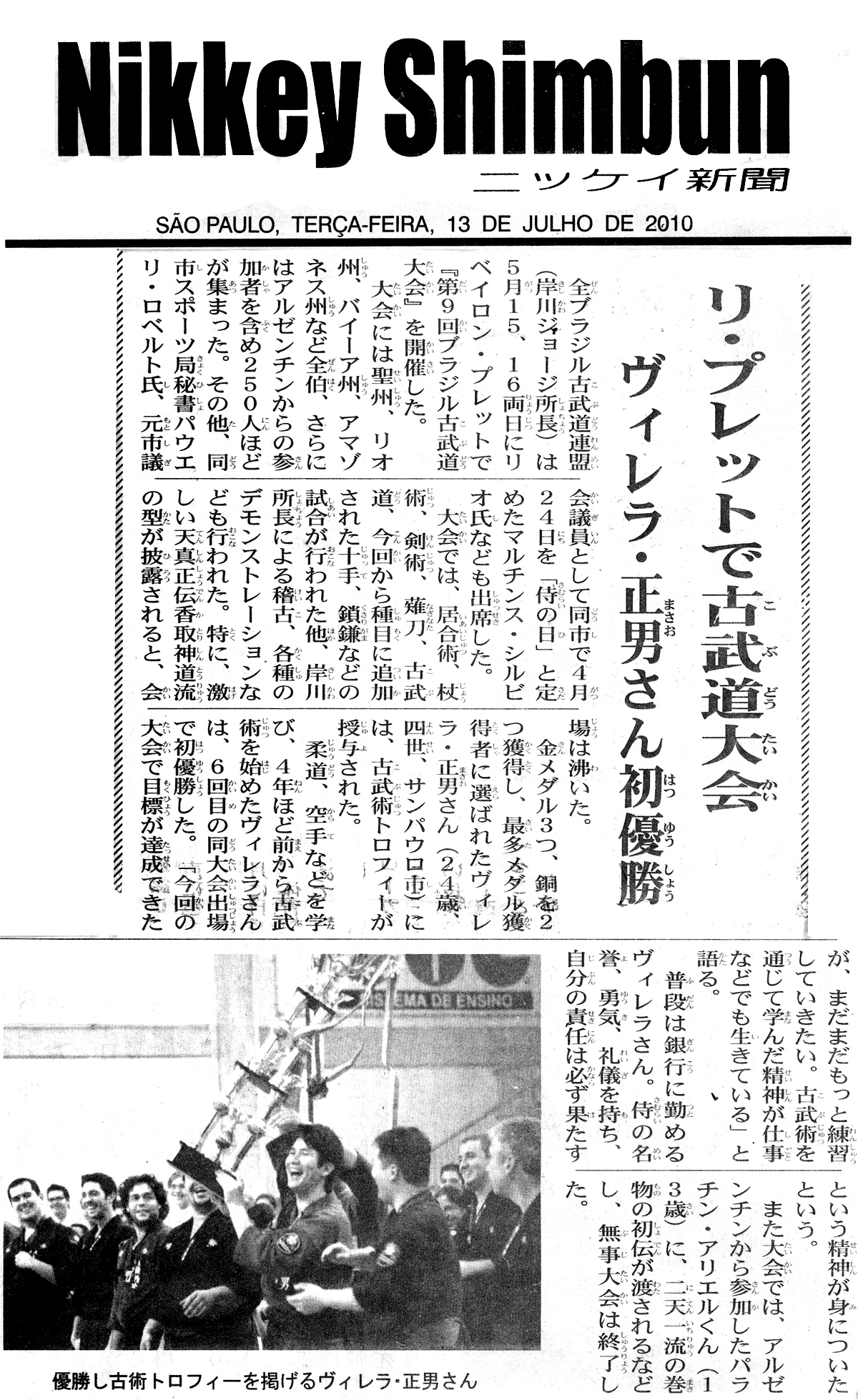 A matéria de hoje no Jornal Nikkey exibiu o que aconteceu no 9° TBKO (9º Torneio Brasileiro de Kobudo em Ribeirão Preto):